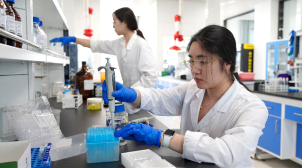 8月31日,檢驗(yàn)員正在位于邯鄲經(jīng)濟(jì)技術(shù)開發(fā)區(qū)的晨光生物實(shí)驗(yàn)室做產(chǎn)品農(nóng)藥殘留檢測(cè)試驗(yàn)(晨光生物供圖)