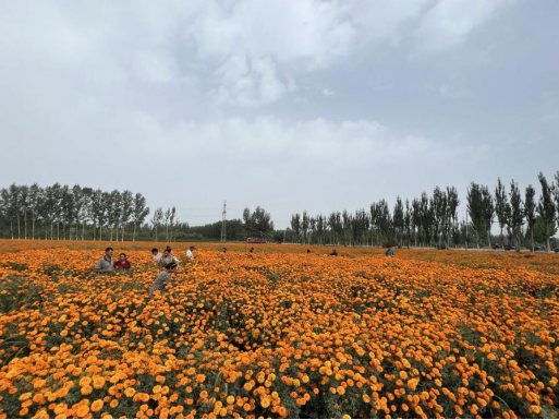 新疆莎車(chē)縣萬(wàn)壽菊花種植大田。