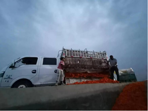新疆晨光于田公司現(xiàn)場(chǎng),村民在卸載萬(wàn)壽菊。