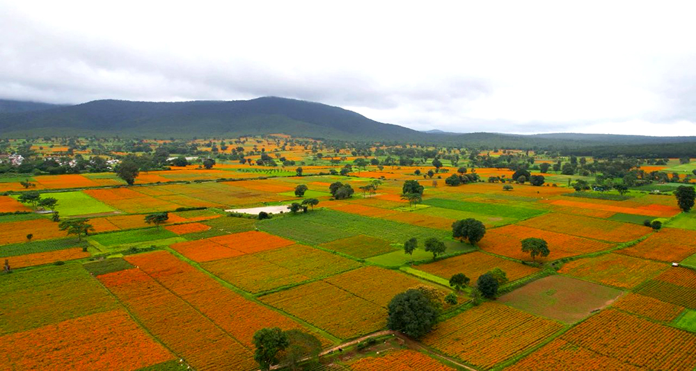 2016年,晨光生物在印度建起第二家工廠,圖為為工廠提供原料的卡納塔克邦萬(wàn)壽菊種植基地(晨光生物供圖)